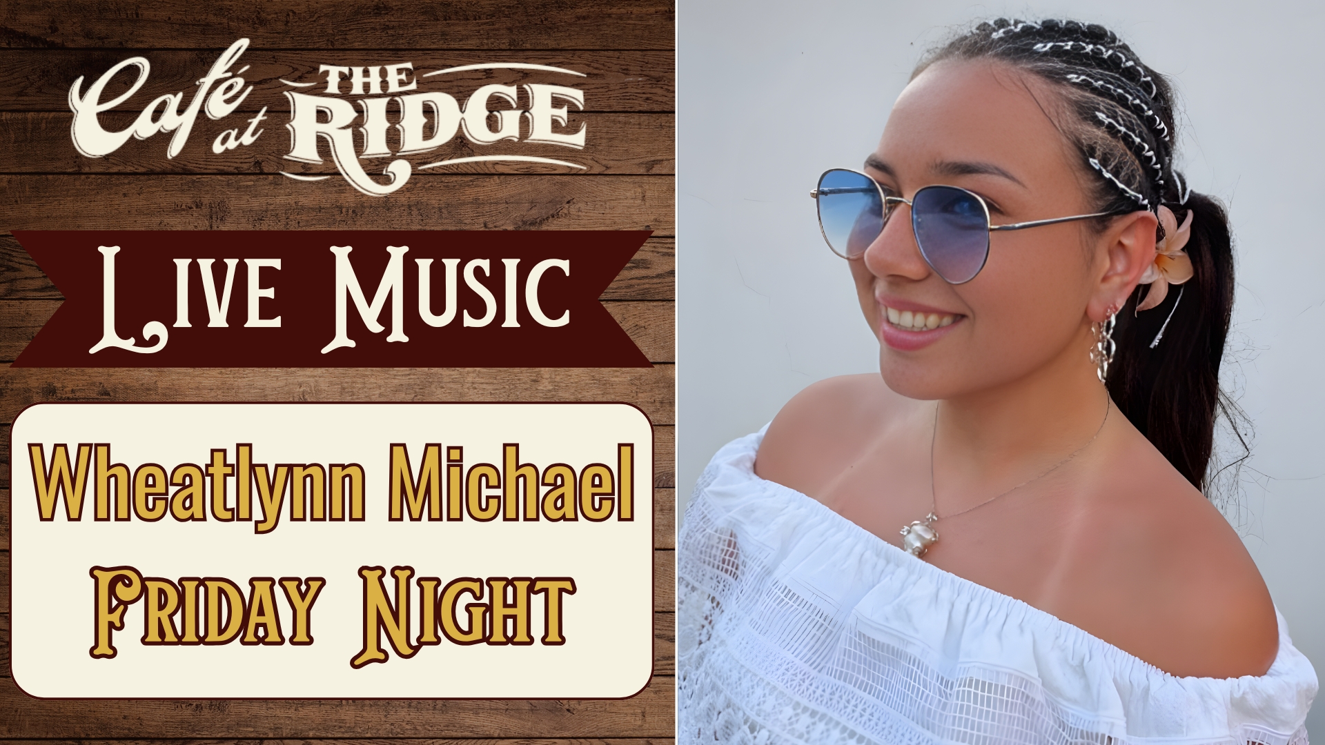 Join us at Cafe at the Ridge for a special evening of live music with Wheatlynn Michael. A familiar face at The Ridge, Wheatlynn was a standout contestant in our Kids Got Talent showcase, and we’re excited to welcome her back to the stage.